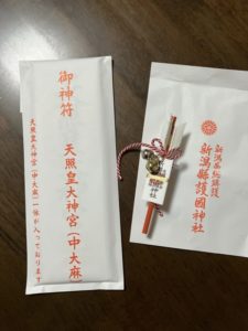 御札とミニ破魔矢。