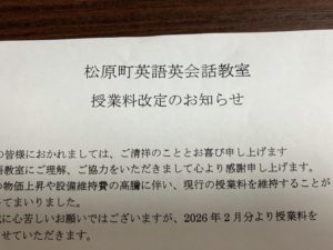 村上市、松原町英語英会話教室の講師、川崎です。