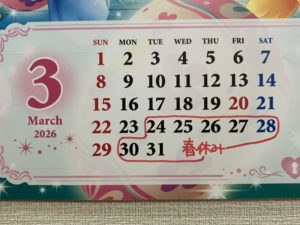 なお、3月 20日(金)は春分の日ですが、通常レッスンありです。