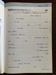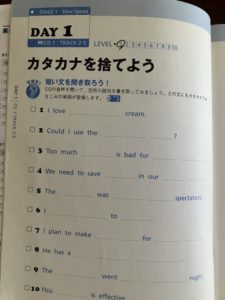 CDから流れてくる英語を穴埋め方式で書き取ります。